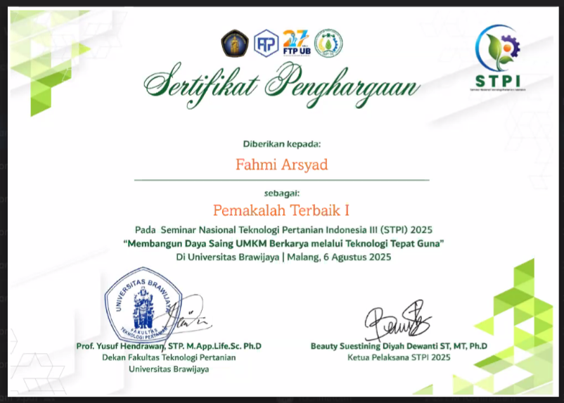 This recognition highlights the contribution of young researchers in creating innovations relevant to the challenges of modern agriculture. It also serves as motivation for other students to continue developing research-based solutions that promote efficiency, sustainability, and competitiveness in Indonesian agriculture.