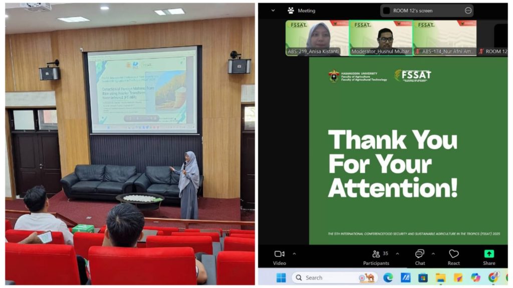 Makassar, October 30, 2025 — A proud achievement was made by graduate students from the Department of Agricultural and Biosystems Engineering (DTPB), Faculty of Agricultural Technology, Universitas Gadjah Mada (FTP UGM), who successfully earned the Best Presenter Award at the 5th International Conference on Food Security and Sustainable Agriculture in The Tropics (FSSAT 2025). The conference was hosted by the Faculty of Agriculture, Hasanuddin University (UNHAS) in a hybrid format on October 29–30, 2025.