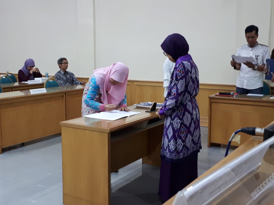 Serah terima jabatan kepala laboratorium disaksikan oleh dekan dan wakil dekan di lingkungan FTP UGM. Pada kesempatan ini Dekan FTP, Prof. Dr. Eny Harmayani, mengharapkan kepala laboratorium yang baru melanjutkan capaian yang sudah dibangun kepala laboratorium sebelumnya serta meningkatkan kinerja untuk menjawab tuntutan pengembangan pengetahuan ke depan.