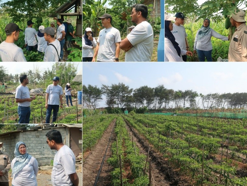 Kegiatan dilanjutkan ke lahan pertanian pasir di Pantai Samas, Bantul, yang dikelola oleh petani mitra DTPB FTP UGM. Di lokasi ini diterapkan sistem irigasi kabut, tetes, dan curah (mist, drip, and sprinkler irrigation systems). Sistem ini memiliki sejumlah keunggulan, antara lain: mampu mengoptimalkan distribusi air langsung ke zona perakaran tanaman, mengurangi kehilangan air akibat evaporasi, serta menjaga kelembaban tanah yang stabil di sekitar tanaman. Dengan demikian, sistem ini tidak hanya mendukung pertumbuhan tanaman lebih baik di lahan marginal seperti lahan pasir, tetapi juga mendukung praktik pertanian berkelanjutan dengan efisiensi sumber daya air.