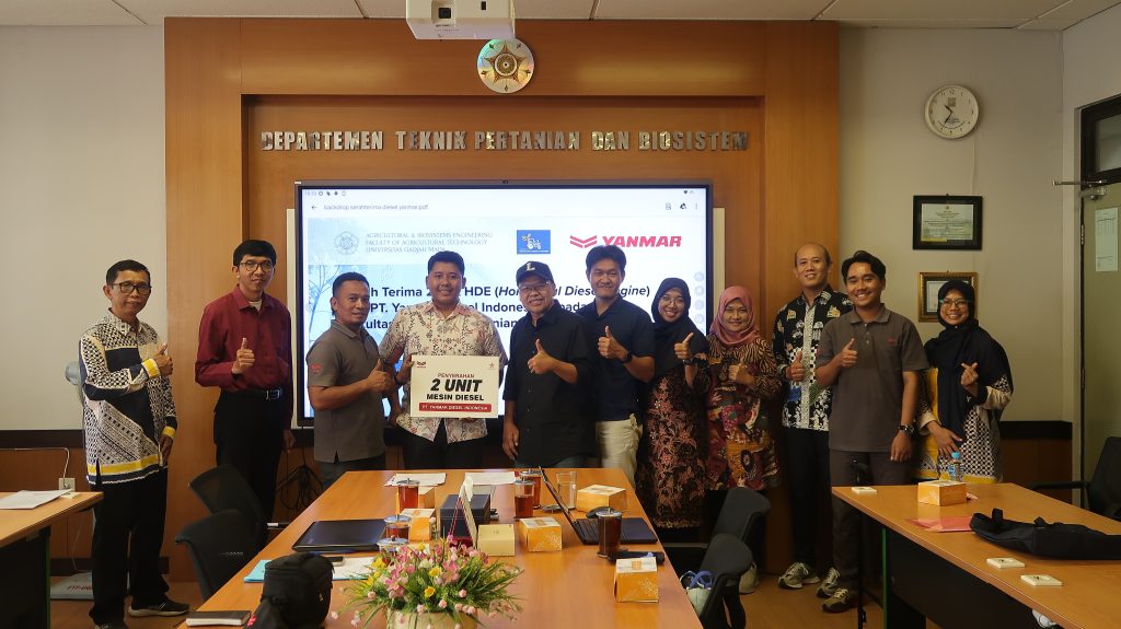 Yogyakarta, 20 November 2025 — Departemen Teknik Pertanian dan Biosistem, Fakultas Teknologi Pertanian UGM (DTPB FTP UGM), resmi menerima hibah dua unit Horizontal Diesel Engine dari PT Yanmar Diesel Indonesia. Prosesi serah terima dilaksanakan di Ruang Sidang 1 DTPB FTP UGM dan dihadiri oleh jajaran pimpinan departemen, dosen, teknisi laboratorium, serta perwakilan fakultas.